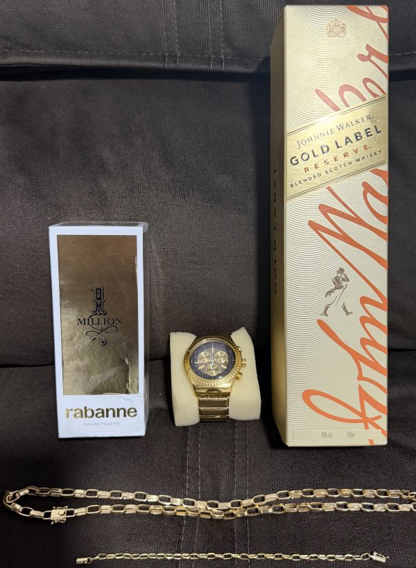1-PRÊMIO SWATCH 007 IMPECÁVEL+UMA CORDA DE OURO 21,69G+PULSEIRA DE OURO 4.5G+ UM PERFUME 1MILLION 100ML+UM GOLD LABEL+PACK DE ENERGÉTICO REDBULL